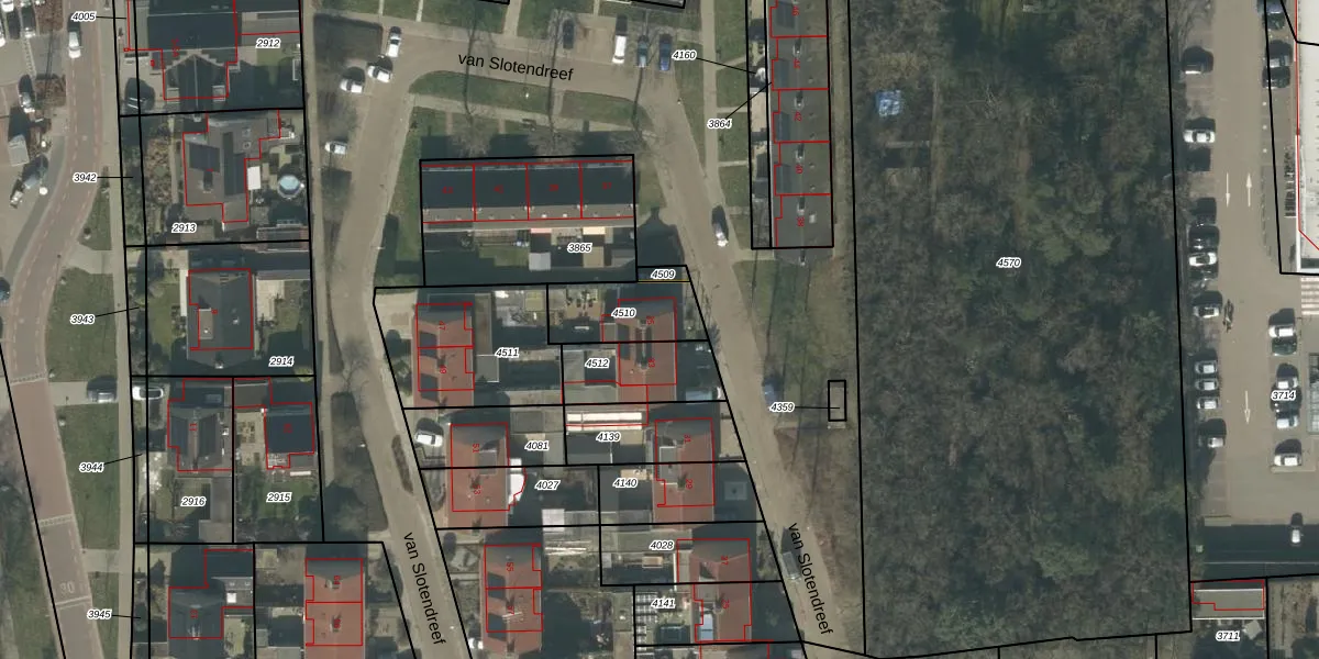 van Slotendreef 35 is gelegen op kadastraal perceel RPN00C4510. Deze kadastrale aanduiding is uniek en wordt gebruikt door het Kadaster om eigendomsrechten en andere zakelijke rechten vast te leggen. Het perceel maakt onderdeel uit van de kadastrale gemeente Rucphen.