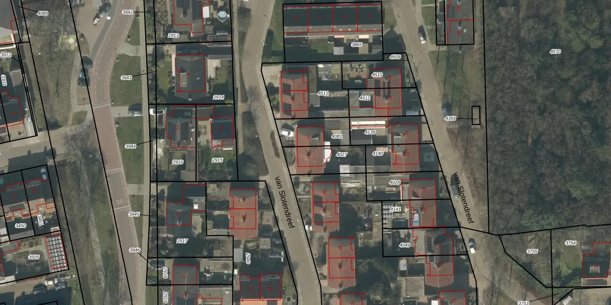 van Slotendreef 53 is gelegen op kadastraal perceel RPN00C4027. Deze kadastrale aanduiding is uniek en wordt gebruikt door het Kadaster om eigendomsrechten en andere zakelijke rechten vast te leggen. Het perceel maakt onderdeel uit van de kadastrale gemeente Rucphen.
