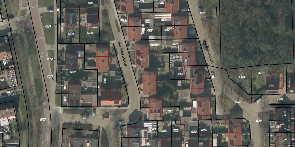 van Slotendreef 59 is gelegen op kadastraal perceel RPN00C4434. Deze kadastrale aanduiding is uniek en wordt gebruikt door het Kadaster om eigendomsrechten en andere zakelijke rechten vast te leggen. Het perceel maakt onderdeel uit van de kadastrale gemeente Rucphen.