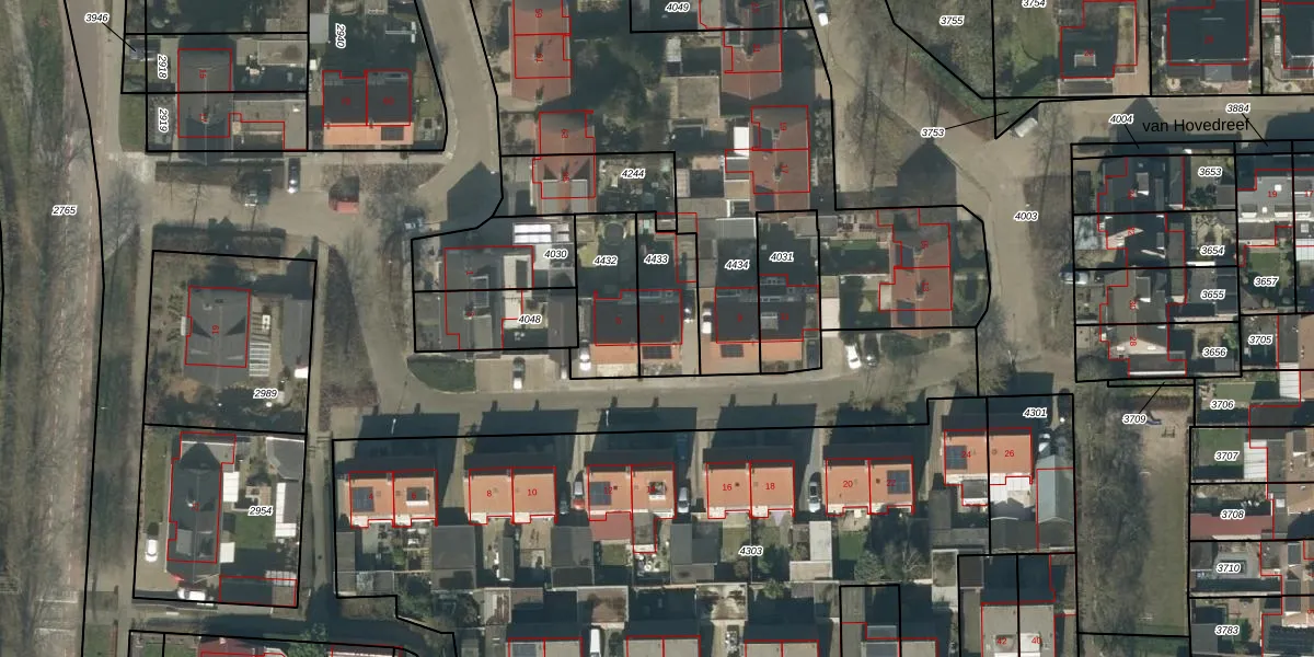 Gebruik de zoekbalk of klik op een perceel voor informatie over de adressen binnen dit perceel.