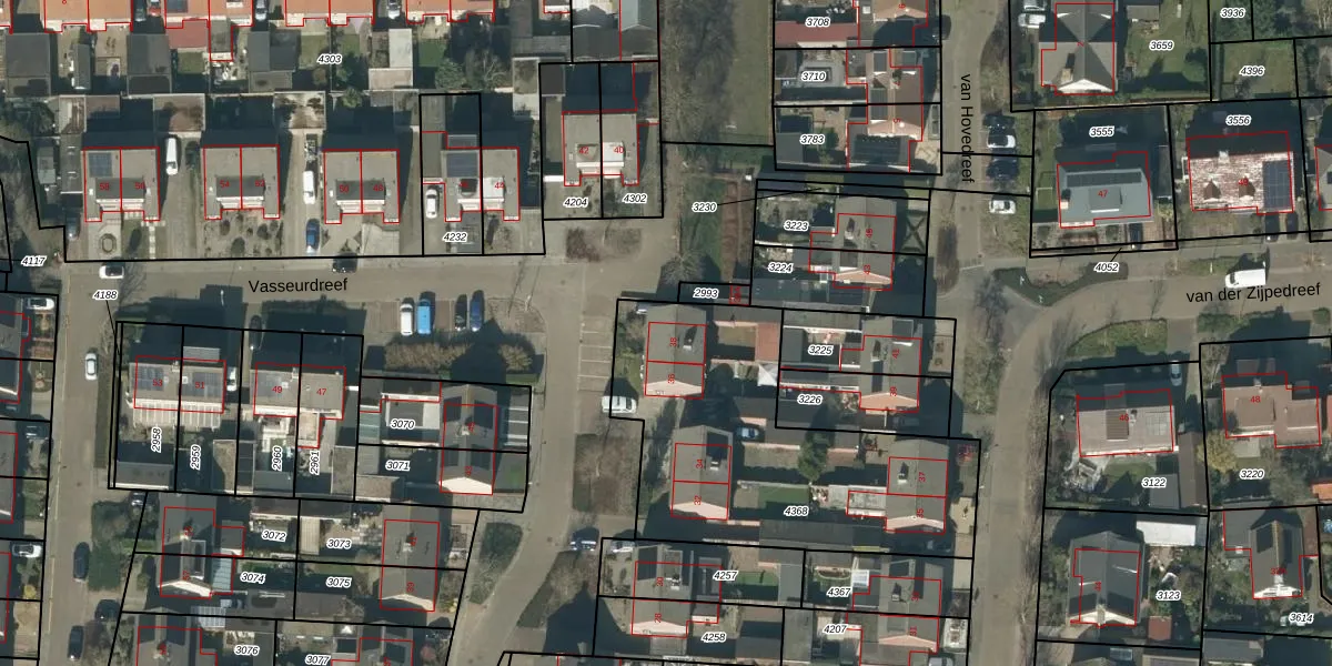 Het perceel waarop Vasseurdreef 38 staat heeft een oppervlakte van 1365 m². Dit is een zeer groot perceel. De perceeloppervlakte wordt geregistreerd door het Kadaster. Gedetailleerde informatie over de maten van dit perceel kunt u vinden in het rapport Kadastrale kaart met maatvoering van Vasseurdreef 38.