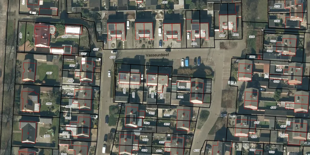 Het perceel waarop Vasseurdreef 49 staat heeft een oppervlakte van 226 m². Dit is een middelgroot perceel. De perceeloppervlakte wordt geregistreerd door het Kadaster. Gedetailleerde informatie over de maten van dit perceel kunt u vinden in het rapport Kadastrale kaart met maatvoering van Vasseurdreef 49.