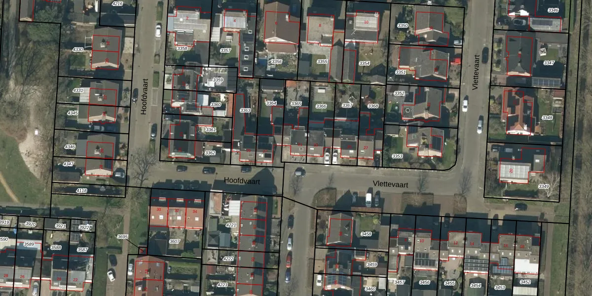 Gebruik de zoekbalk of klik op een perceel voor informatie over de adressen binnen dit perceel.