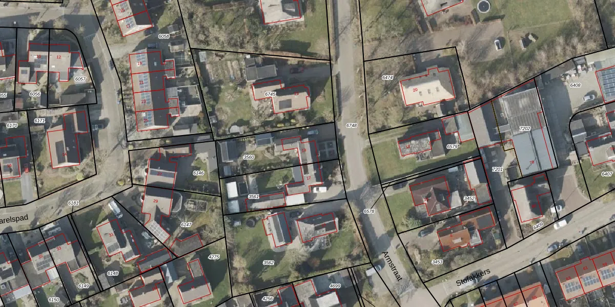 Het perceel waarop Armstraat 19 staat heeft een oppervlakte van 478 m². Dit is een groot perceel. De perceeloppervlakte wordt geregistreerd door het Kadaster. Gedetailleerde informatie over de maten van dit perceel kunt u vinden in het rapport Kadastrale kaart met maatvoering van Armstraat 19.