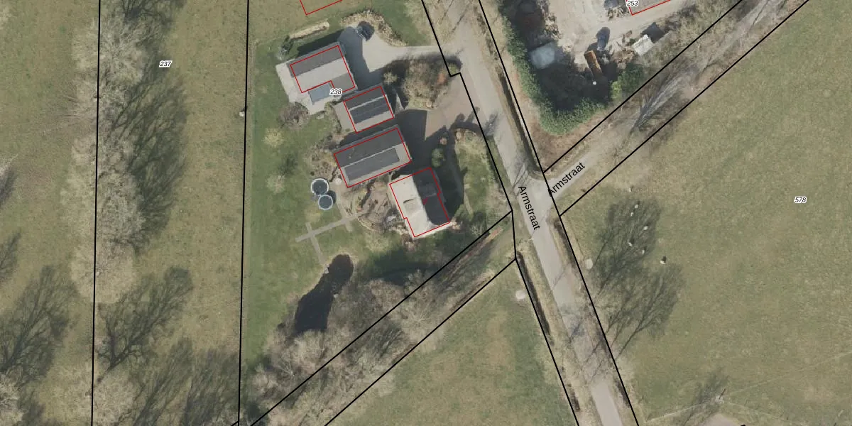 Het perceel waarop Armstraat 27 staat heeft een oppervlakte van 6326 m². Dit is een zeer groot perceel. De perceeloppervlakte wordt geregistreerd door het Kadaster. Gedetailleerde informatie over de maten van dit perceel kunt u vinden in het rapport Kadastrale kaart met maatvoering van Armstraat 27.