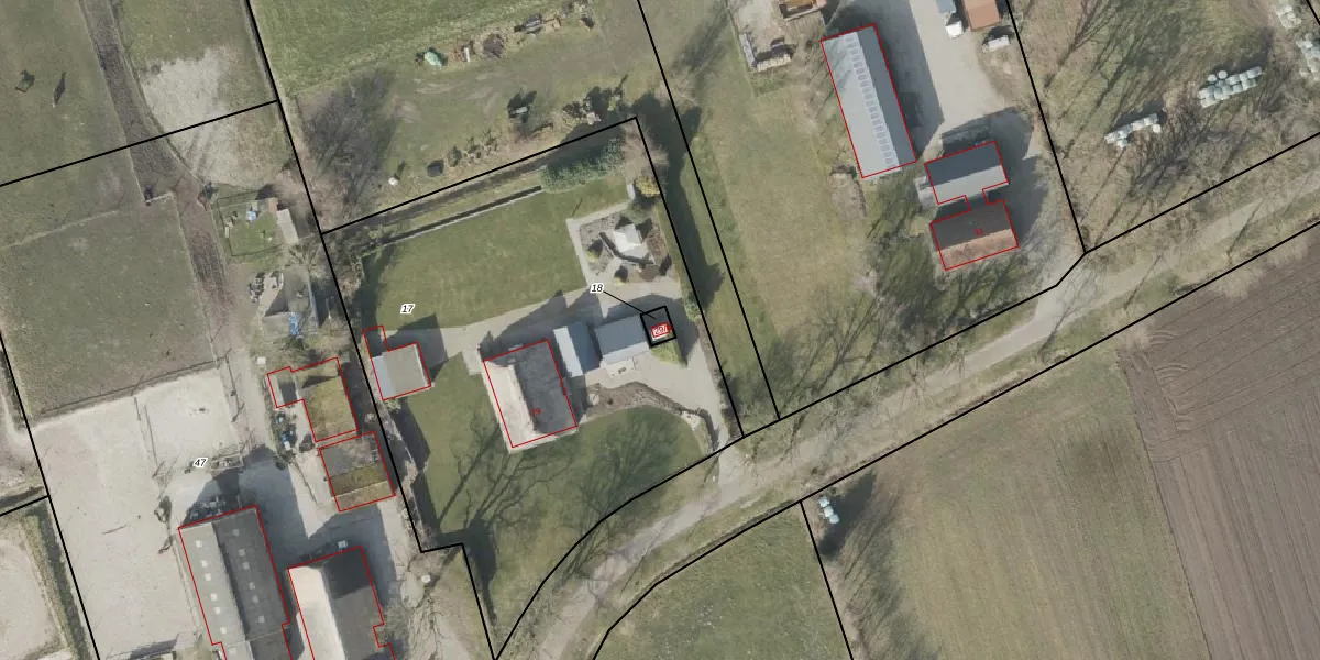 Het perceel waarop het adres ligt is RNN02-K-18. De afkorting 'RNN02' staat voor kadastrale gemeente Ruinen. De gemiddelde perceelgrootte in Ruinen is 1,2 ha. Dit perceel is kleiner: de perceeloppervlakte bedraagt 19 m². Het kleinste perceel in de kadastrale gemeente is 0 m² groot. De grootste perceeloppervlakte is 2,67 km². Dit is het enige adres dat aanwezig is op het perceel. De huidige grenzen van het perceel zijn digitaal in de Basisregistratie Kadaster (BRK) geregistreerd op 03-04-2001.
