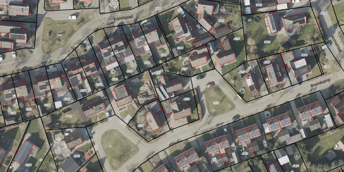 Het perceel waarop Bremkamp 12 staat heeft een oppervlakte van 318 m². Dit is een groot perceel. De perceeloppervlakte wordt geregistreerd door het Kadaster. Gedetailleerde informatie over de maten van dit perceel kunt u vinden in het rapport Kadastrale kaart met maatvoering van Bremkamp 12.
