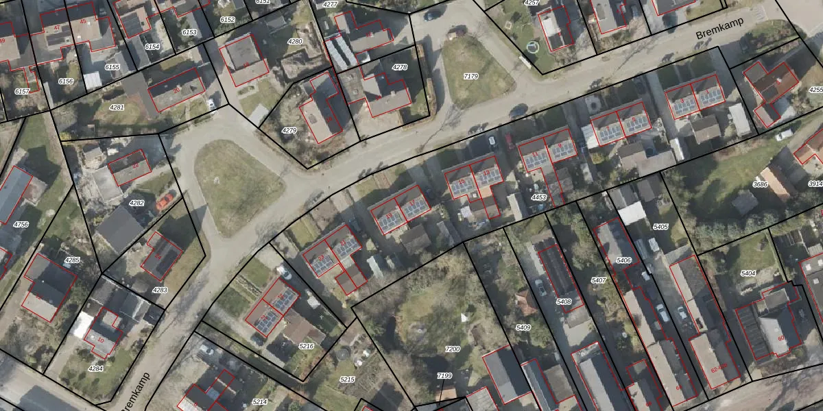 Het perceel waarop Bremkamp 17 staat heeft een oppervlakte van 2794 m². Dit is een zeer groot perceel. De perceeloppervlakte wordt geregistreerd door het Kadaster. Gedetailleerde informatie over de maten van dit perceel kunt u vinden in het rapport Kadastrale kaart met maatvoering van Bremkamp 17.