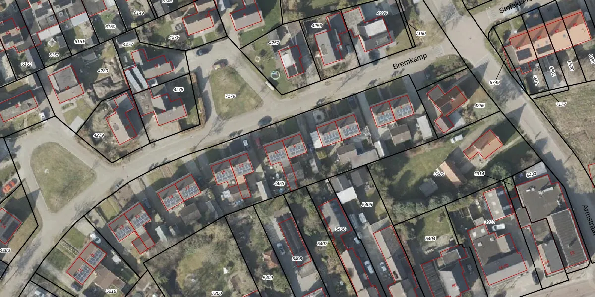 Het perceel waarop Bremkamp 9 staat heeft een oppervlakte van 2794 m². Dit is een zeer groot perceel. De perceeloppervlakte wordt geregistreerd door het Kadaster. Gedetailleerde informatie over de maten van dit perceel kunt u vinden in het rapport Kadastrale kaart met maatvoering van Bremkamp 9.