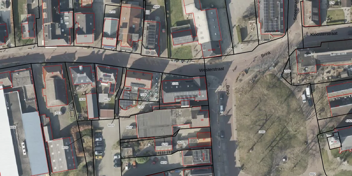 Het perceel waarop Brink 41-e staat heeft een oppervlakte van 489 m². Dit is een groot perceel. De perceeloppervlakte wordt geregistreerd door het Kadaster. Gedetailleerde informatie over de maten van dit perceel kunt u vinden in het rapport Kadastrale kaart met maatvoering van Brink 41-e.