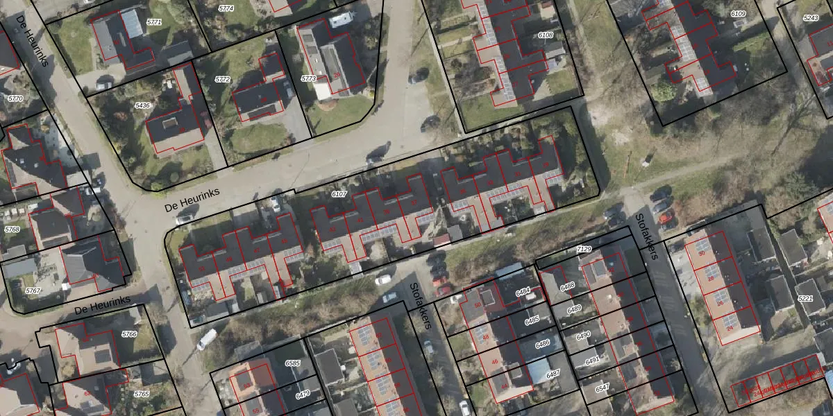 Het perceel waarop De Heurinks 37 staat heeft een oppervlakte van 2390 m². Dit is een zeer groot perceel. De perceeloppervlakte wordt geregistreerd door het Kadaster. Gedetailleerde informatie over de maten van dit perceel kunt u vinden in het rapport Kadastrale kaart met maatvoering van De Heurinks 37.