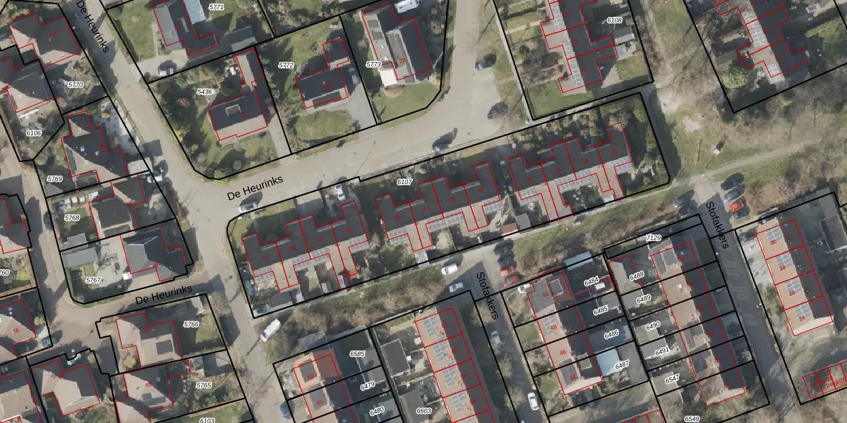 De Heurinks 41 is gelegen op kadastraal perceel RNN02H6107. Deze kadastrale aanduiding is uniek en wordt gebruikt door het Kadaster om eigendomsrechten en andere zakelijke rechten vast te leggen. Het perceel maakt onderdeel uit van de kadastrale gemeente Ruinen.