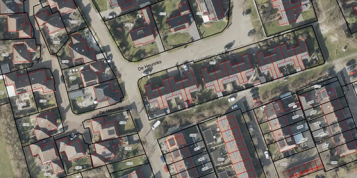 Het perceel waarop De Heurinks 47 staat heeft een oppervlakte van 2390 m². Dit is een zeer groot perceel. De perceeloppervlakte wordt geregistreerd door het Kadaster. Gedetailleerde informatie over de maten van dit perceel kunt u vinden in het rapport Kadastrale kaart met maatvoering van De Heurinks 47.