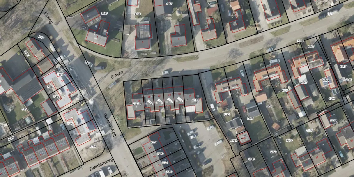 Gebruik de zoekbalk of klik op een perceel voor informatie over de adressen binnen dit perceel.
