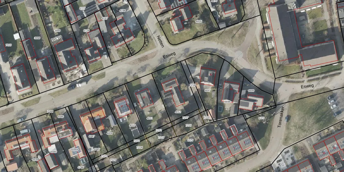 Het perceel waarop Esweg 24 staat heeft een oppervlakte van 545 m². Dit is een groot perceel. De perceeloppervlakte wordt geregistreerd door het Kadaster. Gedetailleerde informatie over de maten van dit perceel kunt u vinden in het rapport Kadastrale kaart met maatvoering van Esweg 24.