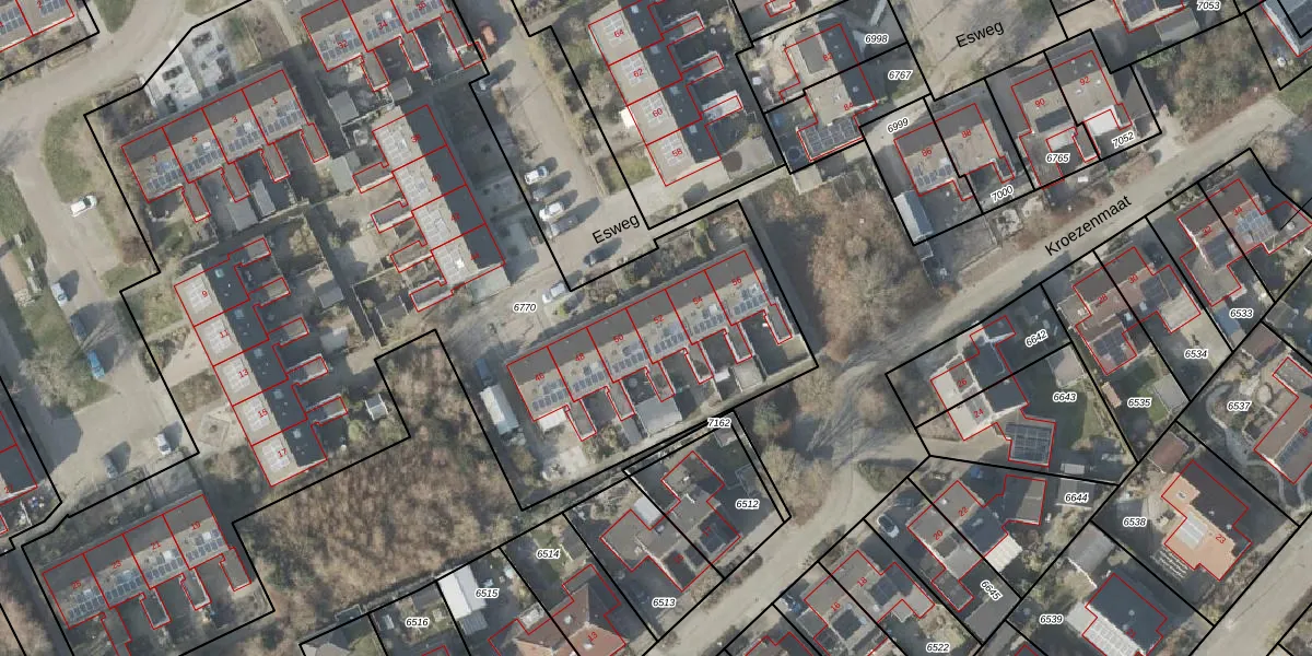 Het perceel waarop Esweg 52 staat heeft een oppervlakte van 6008 m². Dit is een zeer groot perceel. De perceeloppervlakte wordt geregistreerd door het Kadaster. Gedetailleerde informatie over de maten van dit perceel kunt u vinden in het rapport Kadastrale kaart met maatvoering van Esweg 52.