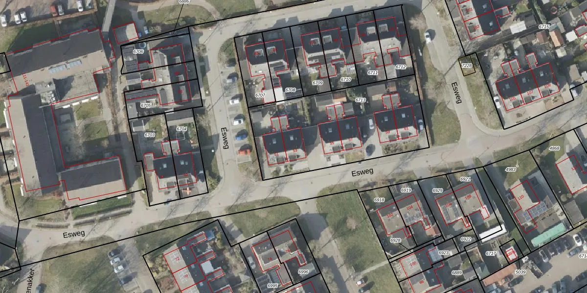 Het perceel waarop Esweg 53 staat heeft een oppervlakte van 1471 m². Dit is een zeer groot perceel. De perceeloppervlakte wordt geregistreerd door het Kadaster. Gedetailleerde informatie over de maten van dit perceel kunt u vinden in het rapport Kadastrale kaart met maatvoering van Esweg 53.