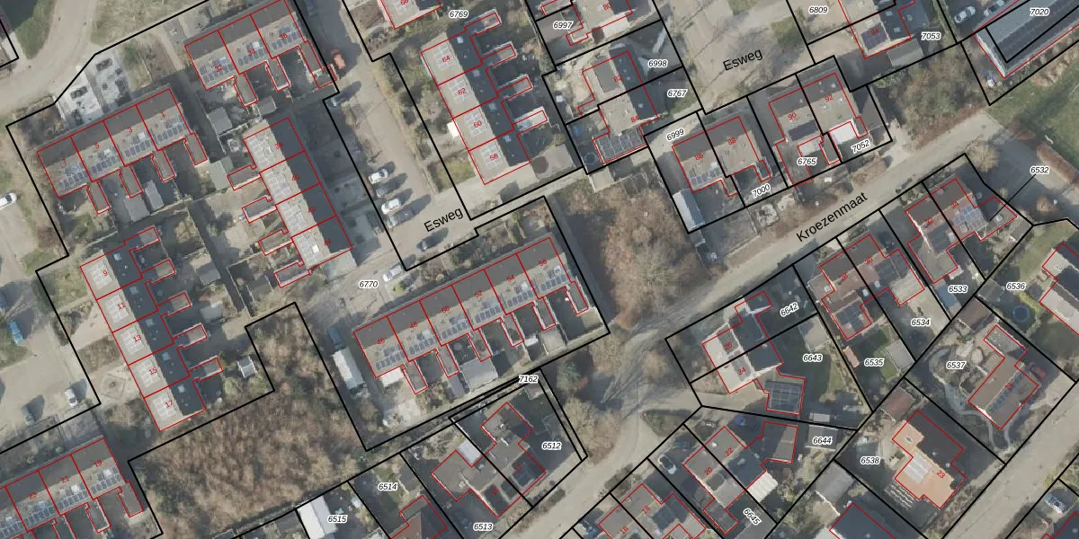 Het perceel waarop Esweg 56 staat heeft een oppervlakte van 6008 m². Dit is een zeer groot perceel. De perceeloppervlakte wordt geregistreerd door het Kadaster. Gedetailleerde informatie over de maten van dit perceel kunt u vinden in het rapport Kadastrale kaart met maatvoering van Esweg 56.