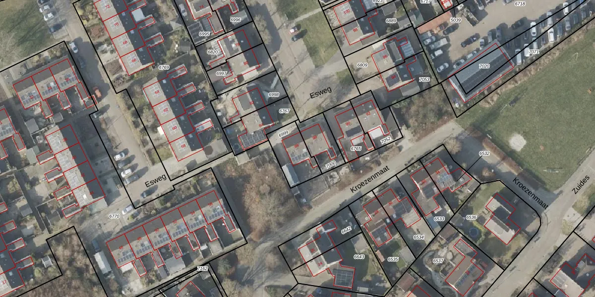Gebruik de zoekbalk of klik op een perceel voor informatie over de adressen binnen dit perceel.