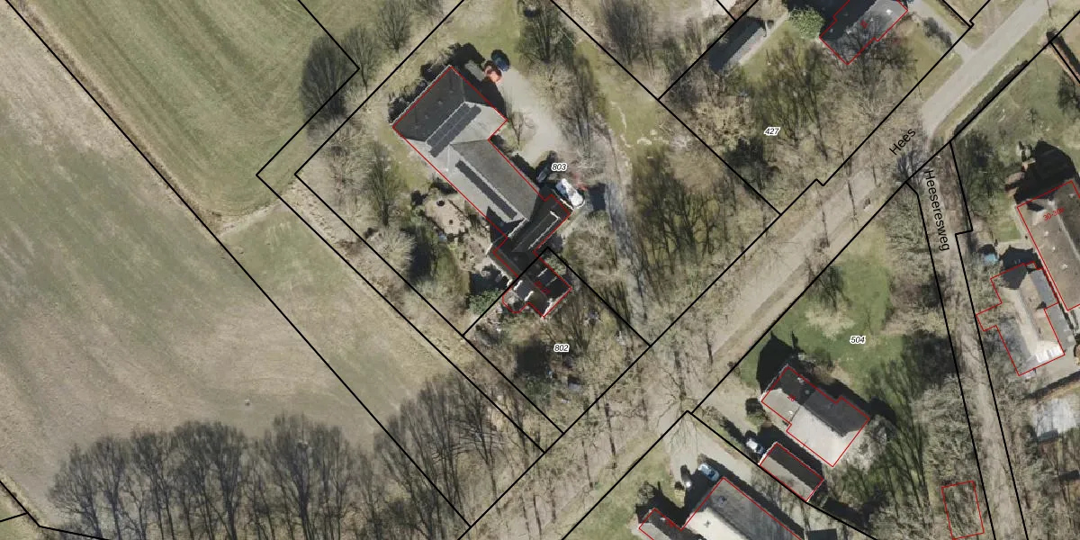 Het perceel waarop Hees 25 staat heeft een oppervlakte van 599 m². Dit is een groot perceel. De perceeloppervlakte wordt geregistreerd door het Kadaster. Gedetailleerde informatie over de maten van dit perceel kunt u vinden in het rapport Kadastrale kaart met maatvoering van Hees 25.