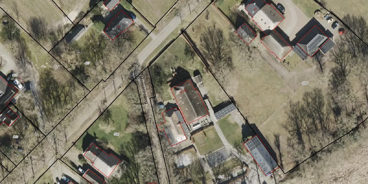 Het perceel waarop Hees 30 staat heeft een oppervlakte van 8175 m². Dit is een zeer groot perceel. De perceeloppervlakte wordt geregistreerd door het Kadaster. Gedetailleerde informatie over de maten van dit perceel kunt u vinden in het rapport Kadastrale kaart met maatvoering van Hees 30.