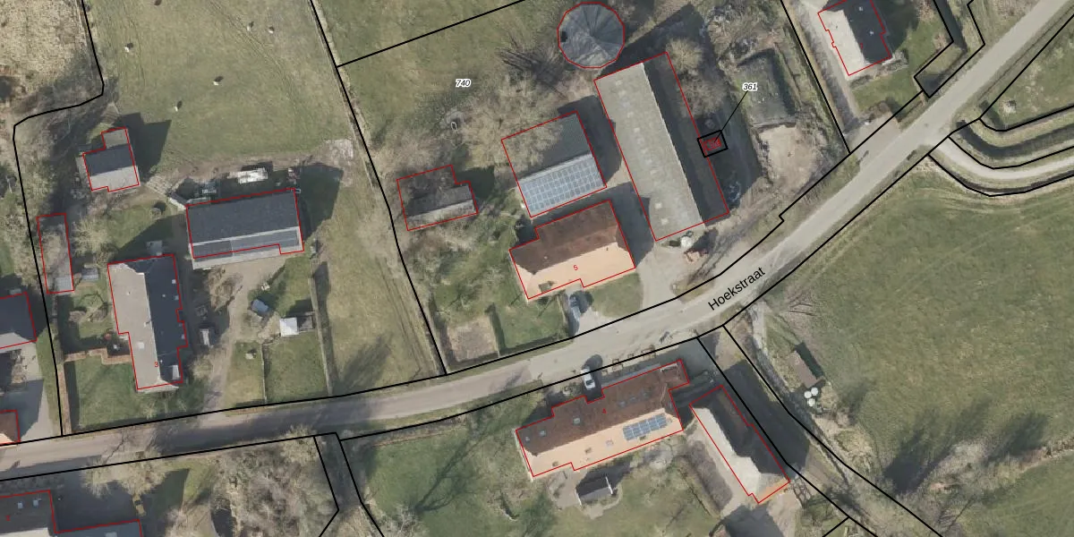 Het perceel waarop Hoekstraat 5 staat heeft een oppervlakte van 4890 m². Dit is een zeer groot perceel. De perceeloppervlakte wordt geregistreerd door het Kadaster. Gedetailleerde informatie over de maten van dit perceel kunt u vinden in het rapport Kadastrale kaart met maatvoering van Hoekstraat 5.