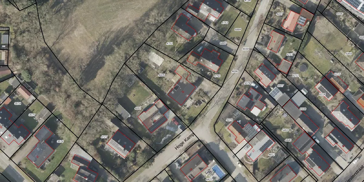 Het perceel waarop Hoge Kamp 18 staat heeft een oppervlakte van 1080 m². Dit is een zeer groot perceel. De perceeloppervlakte wordt geregistreerd door het Kadaster. Gedetailleerde informatie over de maten van dit perceel kunt u vinden in het rapport Kadastrale kaart met maatvoering van Hoge Kamp 18.