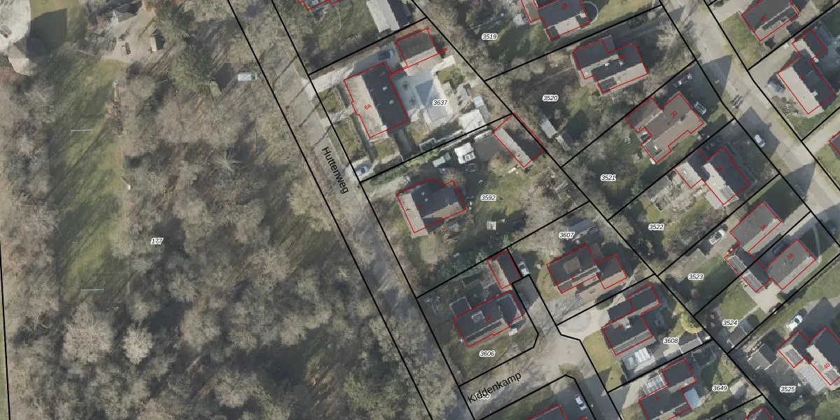 Huttenweg 6 is gelegen op kadastraal perceel RNN02B3592. Deze kadastrale aanduiding is uniek en wordt gebruikt door het Kadaster om eigendomsrechten en andere zakelijke rechten vast te leggen. Het perceel maakt onderdeel uit van de kadastrale gemeente Ruinen.