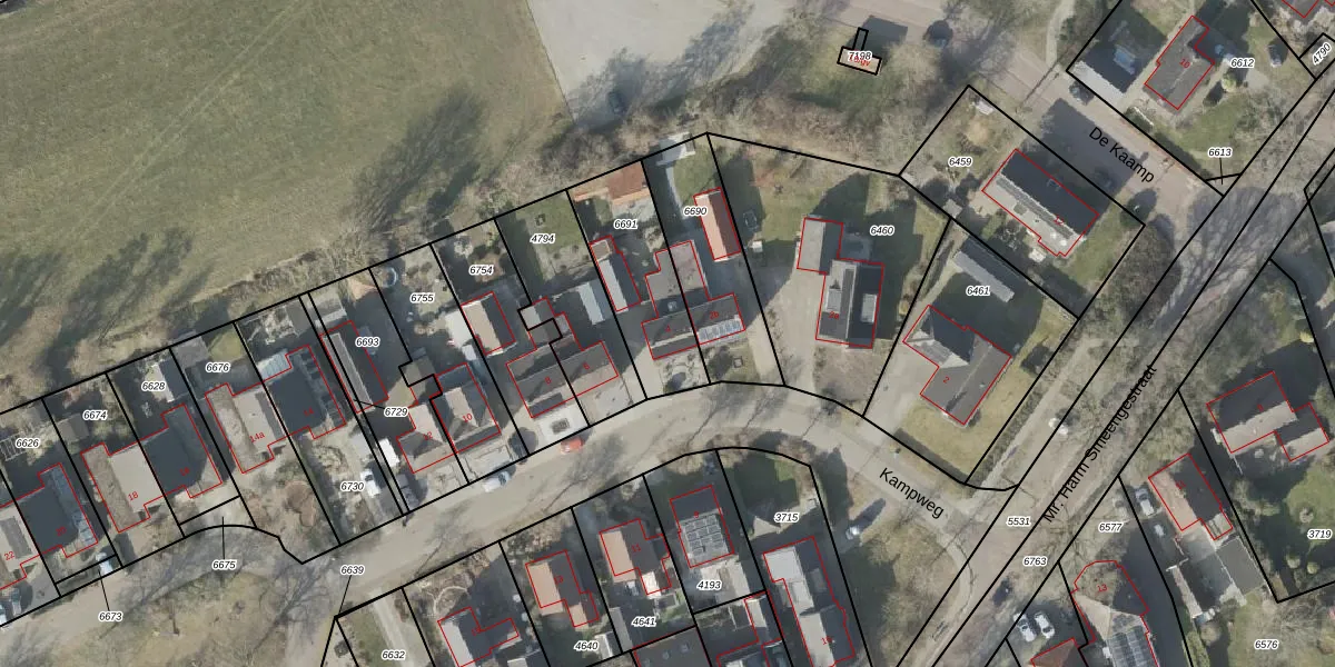 Het perceel waarop Kampweg 4 staat heeft een oppervlakte van 370 m². Dit is een groot perceel. De perceeloppervlakte wordt geregistreerd door het Kadaster. Gedetailleerde informatie over de maten van dit perceel kunt u vinden in het rapport Kadastrale kaart met maatvoering van Kampweg 4.
