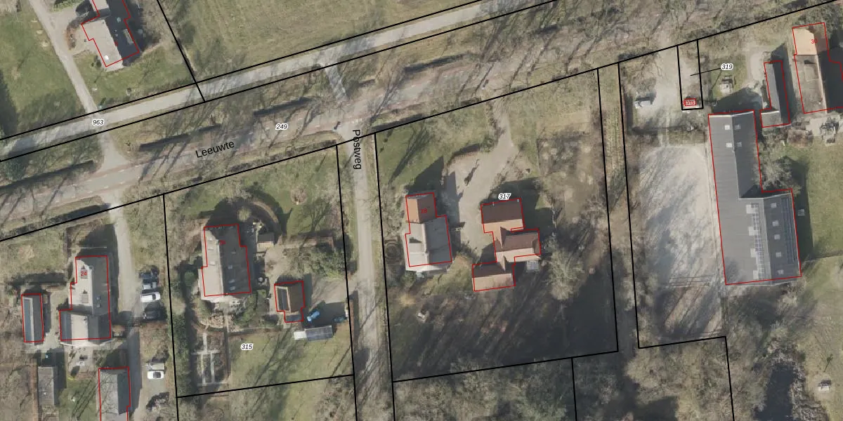 Het perceel waarop Leeuwte 28 staat heeft een oppervlakte van 3409 m². Dit is een zeer groot perceel. De perceeloppervlakte wordt geregistreerd door het Kadaster. Gedetailleerde informatie over de maten van dit perceel kunt u vinden in het rapport Kadastrale kaart met maatvoering van Leeuwte 28.