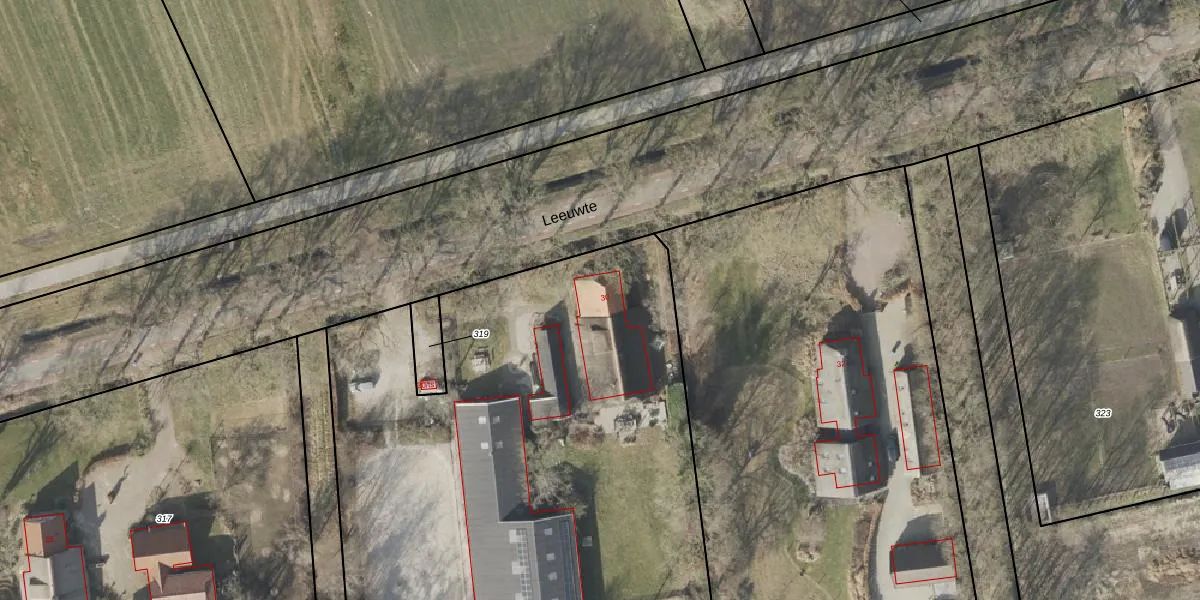 Het perceel waarop Leeuwte 30 staat heeft een oppervlakte van 1,6 ha. Dit is een zeer groot perceel. De perceeloppervlakte wordt geregistreerd door het Kadaster. Gedetailleerde informatie over de maten van dit perceel kunt u vinden in het rapport Kadastrale kaart met maatvoering van Leeuwte 30.