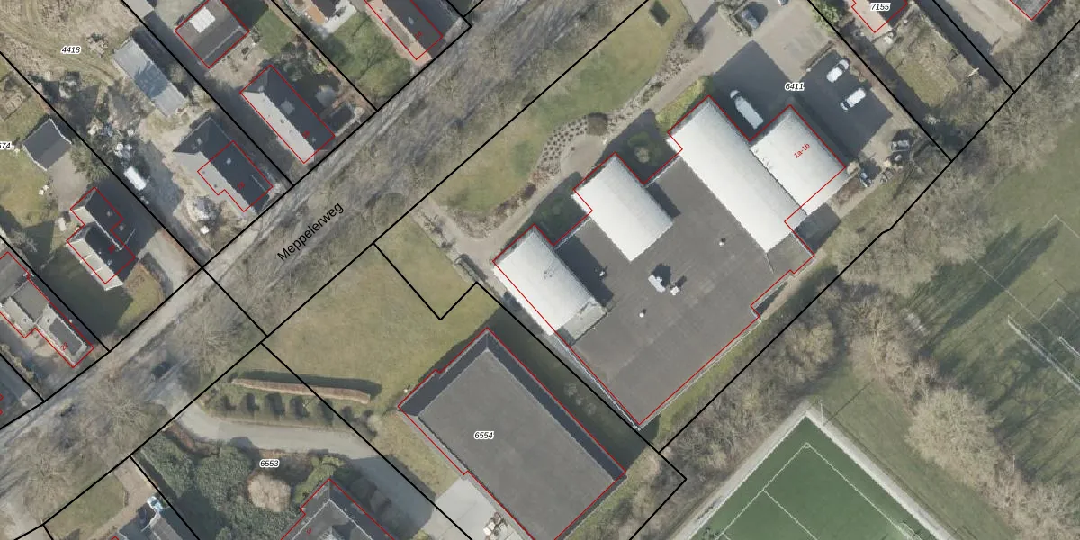 Meppelerweg 1-b is gelegen op kadastraal perceel RNN02H6411. Deze kadastrale aanduiding is uniek en wordt gebruikt door het Kadaster om eigendomsrechten en andere zakelijke rechten vast te leggen. Het perceel maakt onderdeel uit van de kadastrale gemeente Ruinen.