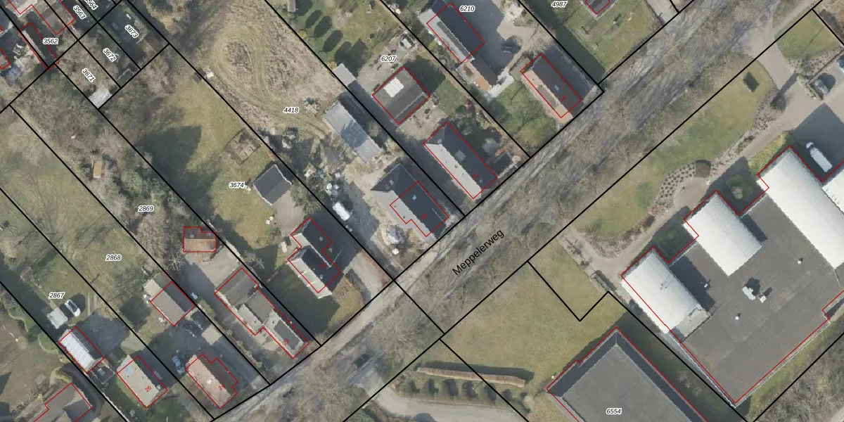 Het perceel waarop Meppelerweg 18 staat heeft een oppervlakte van 2142 m². Dit is een zeer groot perceel. De perceeloppervlakte wordt geregistreerd door het Kadaster. Gedetailleerde informatie over de maten van dit perceel kunt u vinden in het rapport Kadastrale kaart met maatvoering van Meppelerweg 18.
