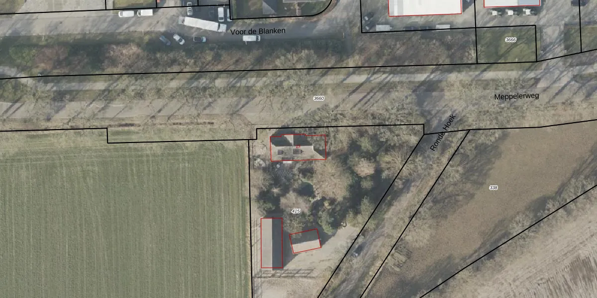 Meppelerweg 23 is gelegen op kadastraal perceel RNN02K415. Deze kadastrale aanduiding is uniek en wordt gebruikt door het Kadaster om eigendomsrechten en andere zakelijke rechten vast te leggen. Het perceel maakt onderdeel uit van de kadastrale gemeente Ruinen.