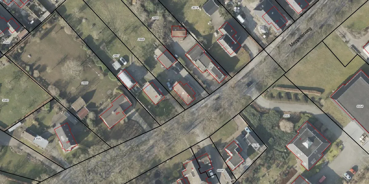 Meppelerweg 24 is gelegen op kadastraal perceel RNN02B2868. Deze kadastrale aanduiding is uniek en wordt gebruikt door het Kadaster om eigendomsrechten en andere zakelijke rechten vast te leggen. Het perceel maakt onderdeel uit van de kadastrale gemeente Ruinen.