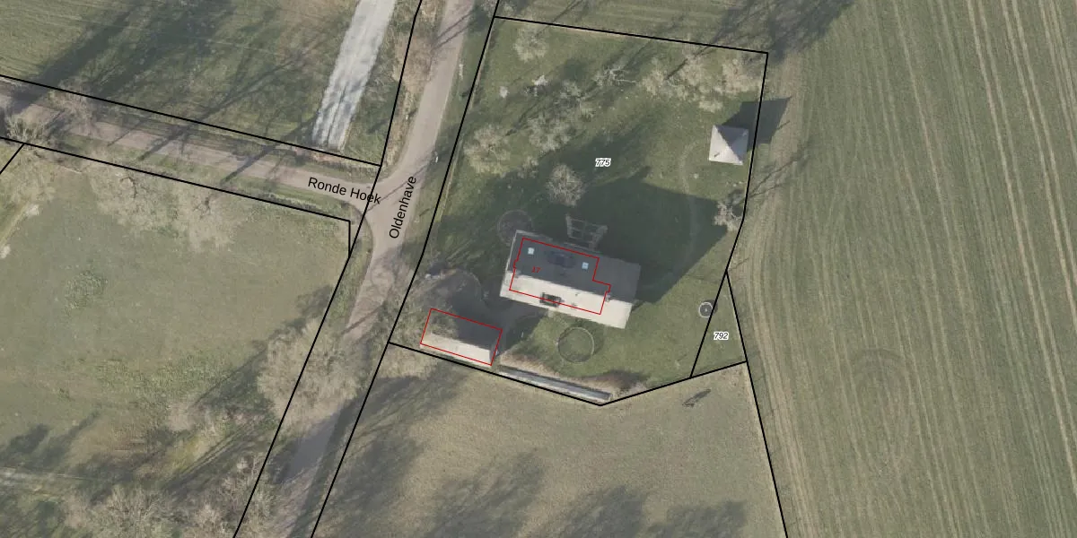 Het perceel waarop Oldenhave 17 staat heeft een oppervlakte van 3600 m². Dit is een zeer groot perceel. De perceeloppervlakte wordt geregistreerd door het Kadaster. Gedetailleerde informatie over de maten van dit perceel kunt u vinden in het rapport Kadastrale kaart met maatvoering van Oldenhave 17.