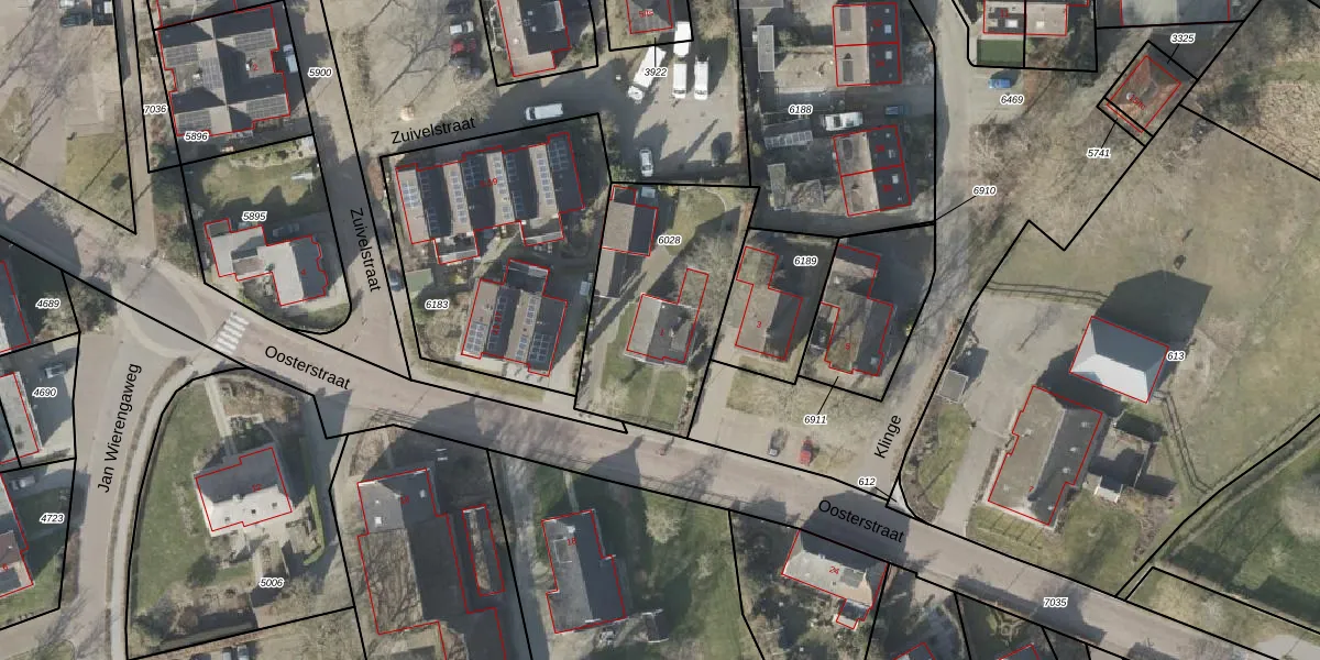 Het perceel waarop Oosterstraat 1 staat heeft een oppervlakte van 745 m². Dit is een groot perceel. De perceeloppervlakte wordt geregistreerd door het Kadaster. Gedetailleerde informatie over de maten van dit perceel kunt u vinden in het rapport Kadastrale kaart met maatvoering van Oosterstraat 1.