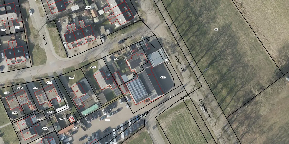 Het perceel waarop Oosterstraat 56 staat heeft een oppervlakte van 956 m². Dit is een groot perceel. De perceeloppervlakte wordt geregistreerd door het Kadaster. Gedetailleerde informatie over de maten van dit perceel kunt u vinden in het rapport Kadastrale kaart met maatvoering van Oosterstraat 56.
