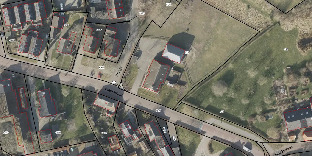 Het perceel waarop Oosterstraat 7 staat heeft een oppervlakte van 3413 m². Dit is een zeer groot perceel. De perceeloppervlakte wordt geregistreerd door het Kadaster. Gedetailleerde informatie over de maten van dit perceel kunt u vinden in het rapport Kadastrale kaart met maatvoering van Oosterstraat 7.