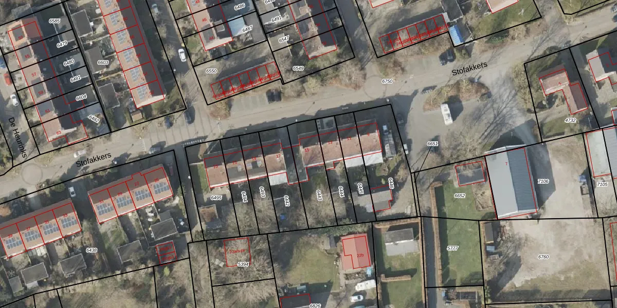 Gebruik de zoekbalk of klik op een perceel voor informatie over de adressen binnen dit perceel.