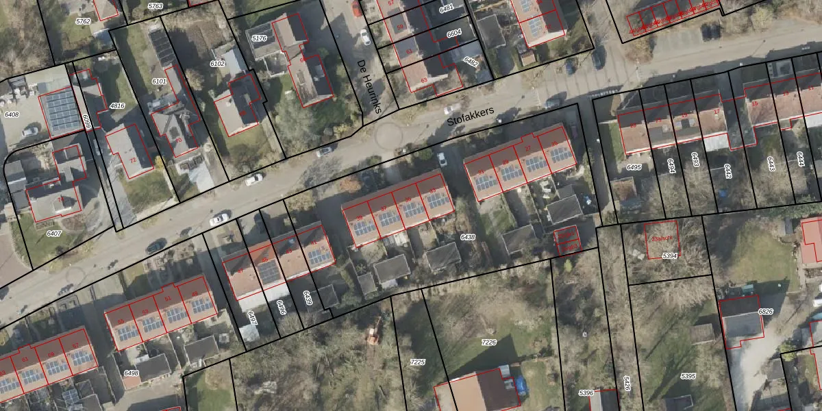 Het perceel waarop Stofakkers 35 staat heeft een oppervlakte van 2407 m². Dit is een zeer groot perceel. De perceeloppervlakte wordt geregistreerd door het Kadaster. Gedetailleerde informatie over de maten van dit perceel kunt u vinden in het rapport Kadastrale kaart met maatvoering van Stofakkers 35.