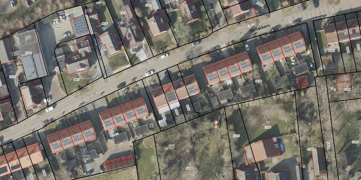 Gebruik de zoekbalk of klik op een perceel voor informatie over de adressen binnen dit perceel.