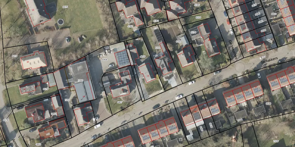 Het perceel waarop Stofakkers 72 staat heeft een oppervlakte van 550 m². Dit is een groot perceel. De perceeloppervlakte wordt geregistreerd door het Kadaster. Gedetailleerde informatie over de maten van dit perceel kunt u vinden in het rapport Kadastrale kaart met maatvoering van Stofakkers 72.