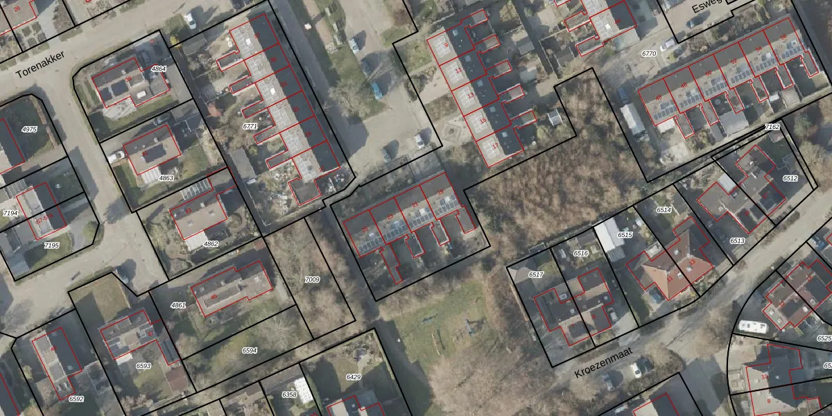 Het perceel waarop Torenakker 21 staat heeft een oppervlakte van 6008 m². Dit is een zeer groot perceel. De perceeloppervlakte wordt geregistreerd door het Kadaster. Gedetailleerde informatie over de maten van dit perceel kunt u vinden in het rapport Kadastrale kaart met maatvoering van Torenakker 21.