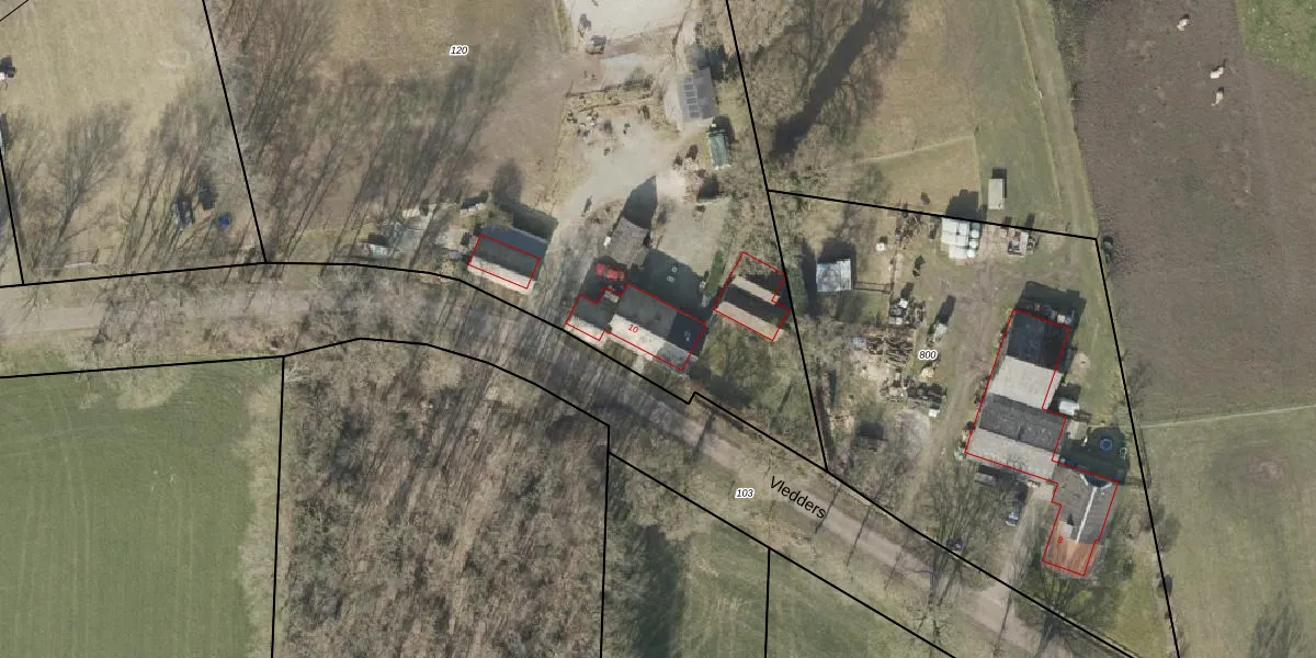 Het perceel waarop Vledders 10 staat heeft een oppervlakte van 6696 m². Dit is een zeer groot perceel. De perceeloppervlakte wordt geregistreerd door het Kadaster. Gedetailleerde informatie over de maten van dit perceel kunt u vinden in het rapport Kadastrale kaart met maatvoering van Vledders 10.