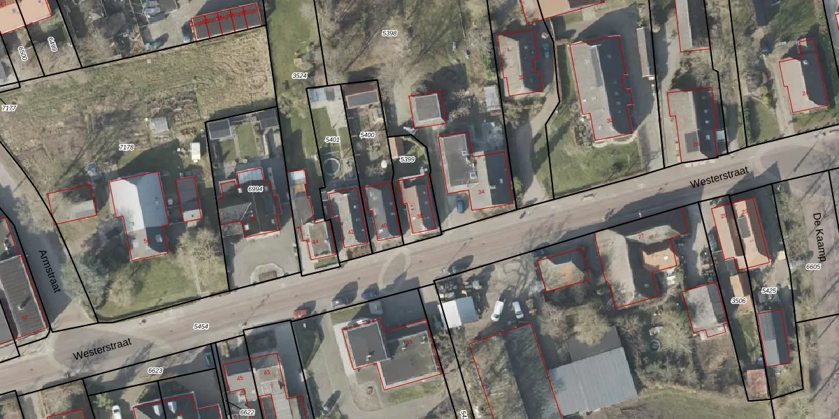 Het perceel waarop Westerstraat 38 staat heeft een oppervlakte van 226 m². Dit is een middelgroot perceel. De perceeloppervlakte wordt geregistreerd door het Kadaster. Gedetailleerde informatie over de maten van dit perceel kunt u vinden in het rapport Kadastrale kaart met maatvoering van Westerstraat 38.
