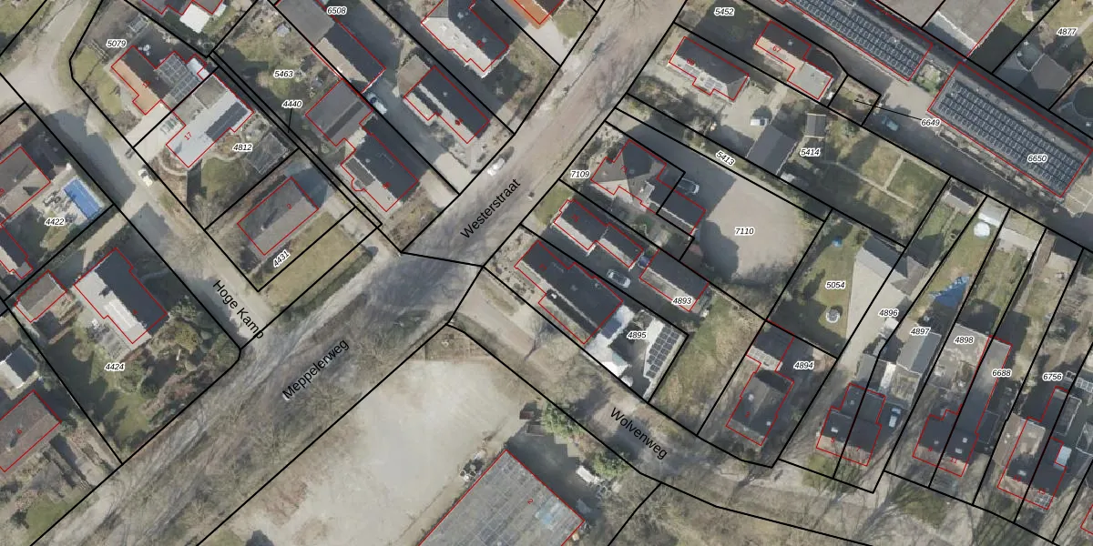 Westerstraat 77 is gelegen op kadastraal perceel RNN02H4895. Deze kadastrale aanduiding is uniek en wordt gebruikt door het Kadaster om eigendomsrechten en andere zakelijke rechten vast te leggen. Het perceel maakt onderdeel uit van de kadastrale gemeente Ruinen.