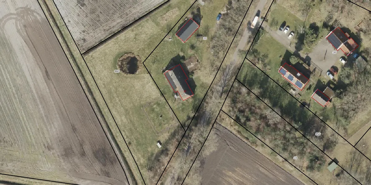 Het adres ligt op het perceel RNN02-L-20, dat zich in de kadastrale gemeente Ruinen bevindt. Het perceel is 2330 m² groot. Dat is kleiner dan de gemiddelde perceeloppervlakte in Ruinen, dat op 1,2 ha ligt. De grootste perceeloppervlakte in de kadastrale gemeente is 2,67 km². De kleinste oppervlakte bedraagt 0 m². Dit is het enige adres dat aanwezig is op het perceel. De laatste wijziging in het de Basisregistratie Kadaster (BRK) was op 18-11-2009.