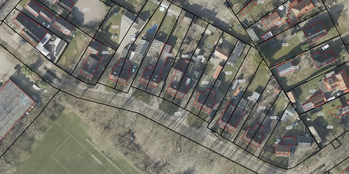 Wolvenweg 13 is gelegen op kadastraal perceel RNN02H6756. Deze kadastrale aanduiding is uniek en wordt gebruikt door het Kadaster om eigendomsrechten en andere zakelijke rechten vast te leggen. Het perceel maakt onderdeel uit van de kadastrale gemeente Ruinen.