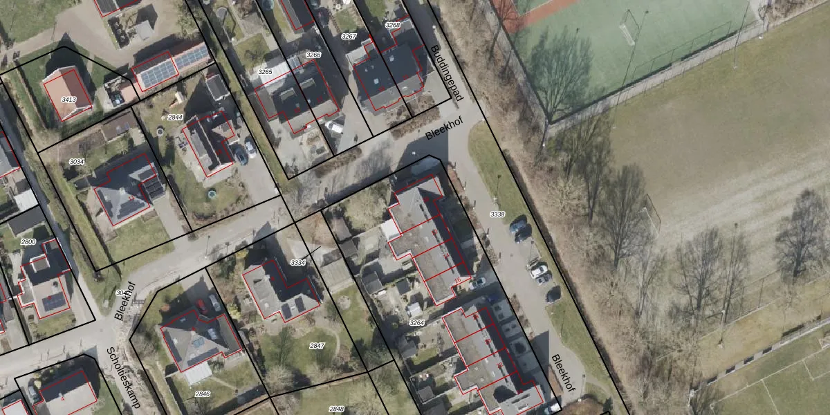 Het perceel waarop Bleekhof 10 staat heeft een oppervlakte van 2144 m². Dit is een zeer groot perceel. De perceeloppervlakte wordt geregistreerd door het Kadaster. Gedetailleerde informatie over de maten van dit perceel kunt u vinden in het rapport Kadastrale kaart met maatvoering van Bleekhof 10.
